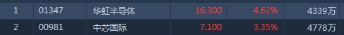 智通财经APP获悉,A股芯片板块大涨,多只股现涨停,带动港股芯片股强势上扬。截至11时04分,华虹半导体(01347)涨4.62%,报价16.3港元,中芯国际(00981)涨3.35%,报7.1港元。