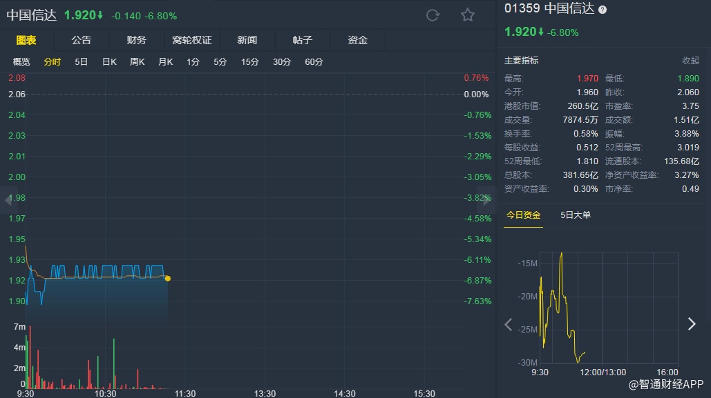 9)导致金融资产公允值更趋波动,带来显着未变现亏损;旗下幸福人寿因资本市场波动,录大额亏损;及没有前年出售产险业务带来的一次性收益。即使估值低企,大摩维持予信达“与大市同步”评级,目标价2.98港元。