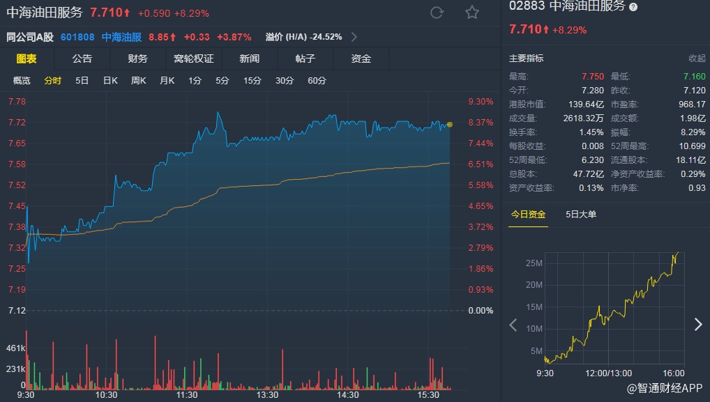 该行称,中海油服最受惠中海油内地扩展计划,因中海油为集团钻井设备业务收入贡献超过50%,油田技术服务收入贡献更达95%,随着钻井复杂性增加,预计中海油服更能受益。相信集团2020年海外收入占比扩大到50%的目标压力应可减少(2017年为25%),维持“买入”评级,目标价8.9港元。