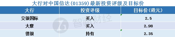 二、大行对中国信达(01359)最新投资评级及目标价汇总