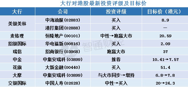一、大行对中海油(00883)最新投资评级及目标价汇总
