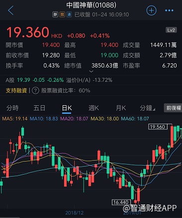 截至今日收盘,中国神华(01088)涨0.41%,报19.36港元。