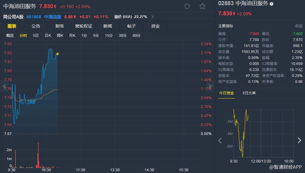 智通财经APP获悉,瑞银报告称,中海油服(02883)股价自年初反弹近20%,相信这是受到油市及股市复苏支持,及市场预期中海油(00883)资本开支大升。然而,市场或会大幅下降其盈利预测,认为市场可能需要更多证明才会将其长期回报反映。