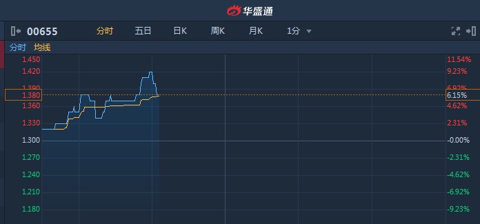 智通财经APP获悉,香港华人有限公司(00655)月内累计涨幅超50%,盘中一度涨至1.42港元,创近一年新高,截至11时03分,涨6.15%,报价1.38港元,成交额6149万。