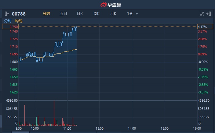 智通财经APP获悉,中国铁塔(00788)早盘再现强力拉升,股价再创新高1.75港元,截至11时16分,涨4.16%,报1.75港元,成交额7.183亿港元。