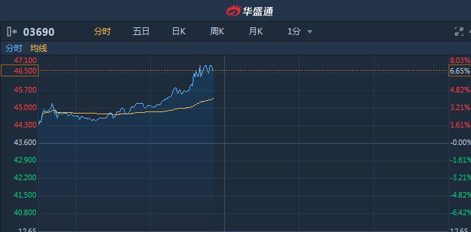 智通财经APP获悉,美团点评(03690)早盘买盘增加,资金快速流入获追捧,截至11时50分,涨7%,报价46.65港元,成交额1.352亿。