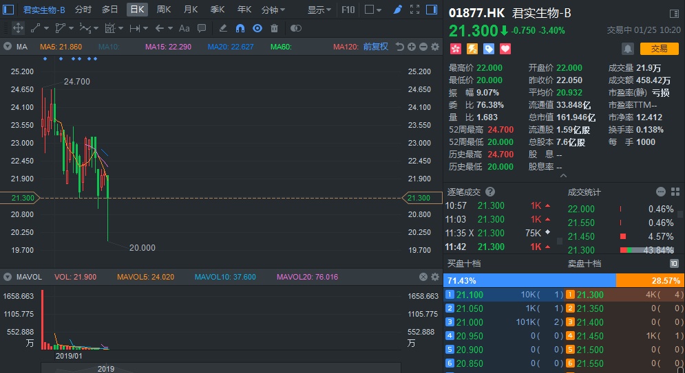 结合现有的“国产”优势,君实生物2019年有望迎来巨大回报。不过,预期归预期,该股自上市以来,虽然为破发,可总体表现差强人气,截止目前累计跌幅超过9个点。