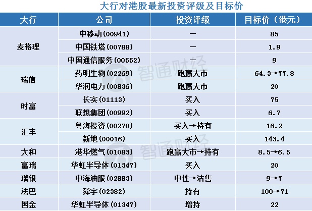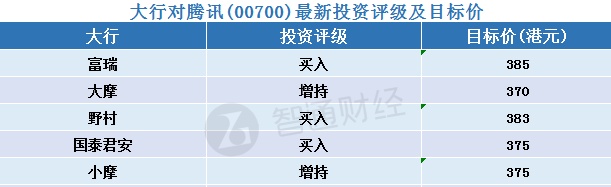 一、大行对腾讯(00700)最新投资评级及目标价汇总