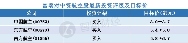 一、富瑞对中资航空股最新投资评级及目标价汇总