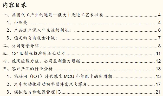 晶圆代工产业的通则是 “数大+先进工艺未必美”, 在晶圆代工产业进行的先进制程研发竞赛中,因为首单,先进封测技术及折旧及成本优势,有赢者(台积电)通吃的特性,而跟随者连剩菜剩汤都吃不到的困境,但反而是专注于8英寸旧制程工艺晶圆代工的华虹,因受惠于多样化代工产品的扎实需求而稳定增长,让其能透过调整产品结构来提升平均单价及毛利。