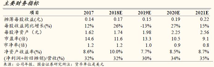我们首次覆盖华虹并给予“买入”评级,我们预估其未来3-4年,2018-2025年的营收有18-22%的复合成长率(高于中国晶圆代工产业的10-12%复合成长率)及摊薄每股收益有13-23%的复合增长率。未来12-18个月HK$22元目标价位有超过30%的潜在获利空间,目标价是建立于13倍2021年每股收益的US$0.22(1倍PEG)和落在1.2倍的2020年每股净资产,对应8-10%的净资产收益率预估。