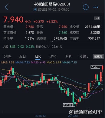 截至今日收盘,中海油田服务(02883)涨3.52%,报7.94港元。