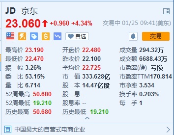 智通财经APP获悉,京东(JD.US)在开盘后上扬近5%,在周四美股交易阶段,该家公司中国电商市值第二的位置险些易主,这在今日的中国媒体上成为一个不小的话题。
