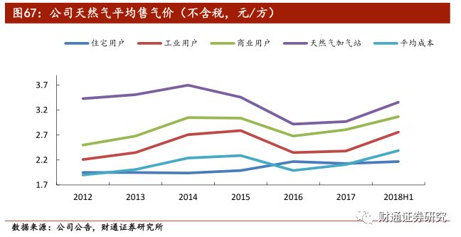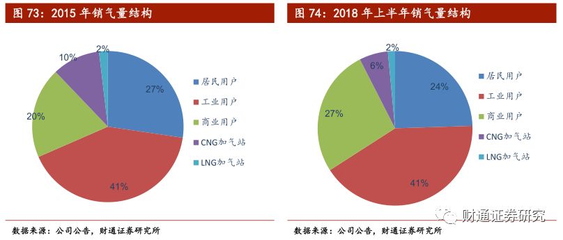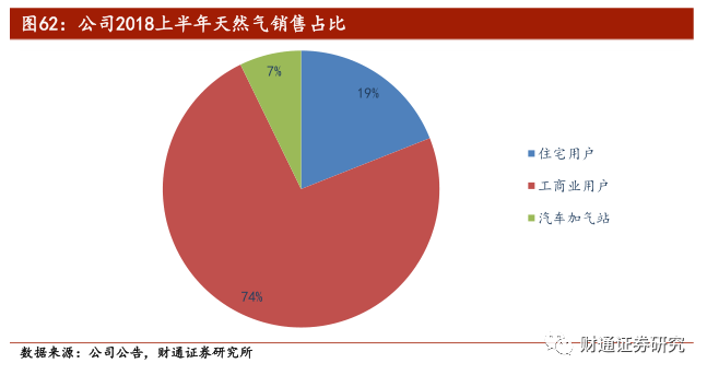 从天然气销售占比看,公司天然气主要销向为工商业用户,2018年上半年公司近3/4的天然气销售给工商业用户。