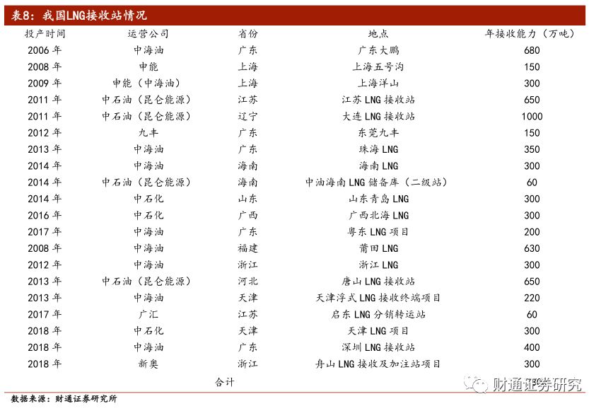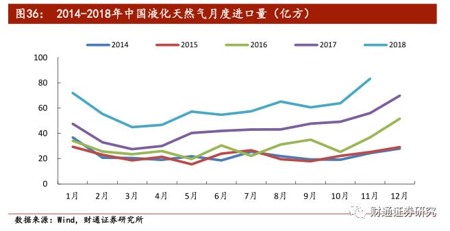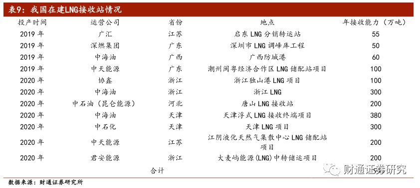 从月度液化天然气进口数据来看,每月进口的液化天然气数据增量直线上涨,随着新LNG接收站的投建,随着我国天然气消费量不断提升,我国进口LNG量有望持续攀升。