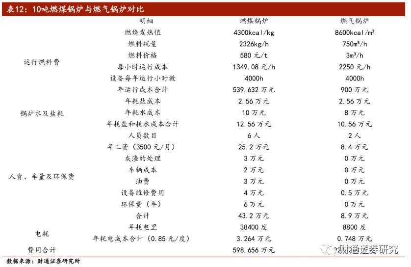 目前我国天然气作为工业燃料不具备成本优势,但受环保影响,天然气锅炉受政策倾斜:我们按下表资料对应最新的煤价和工业气价,10吨的燃气锅炉比燃煤锅炉的成本要高约54%,但燃气锅炉具有更高的热效率和更好的环境效益。根据《能源发展十三五规划》,我国将扩大城市高污染燃料禁燃区范围,加快实施“煤改气”。以京津冀及周边地区、长三角、珠三角、东北地区为重点,推进重点城市“煤改气”工程,增加用气450亿立方米,替代燃煤锅炉18.9万蒸吨。