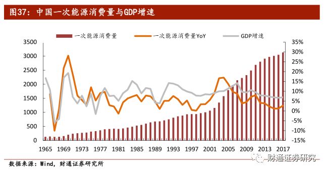 我国GDP的增长与一次能源消耗量具有密切的关系,通过拟合1965-2017年GDP增速与一次能源消耗量增速,二者的相关系数为0.625,未来我国的经济预计将维持平稳增长,一次能源的消耗量预计也将持续平稳增长。