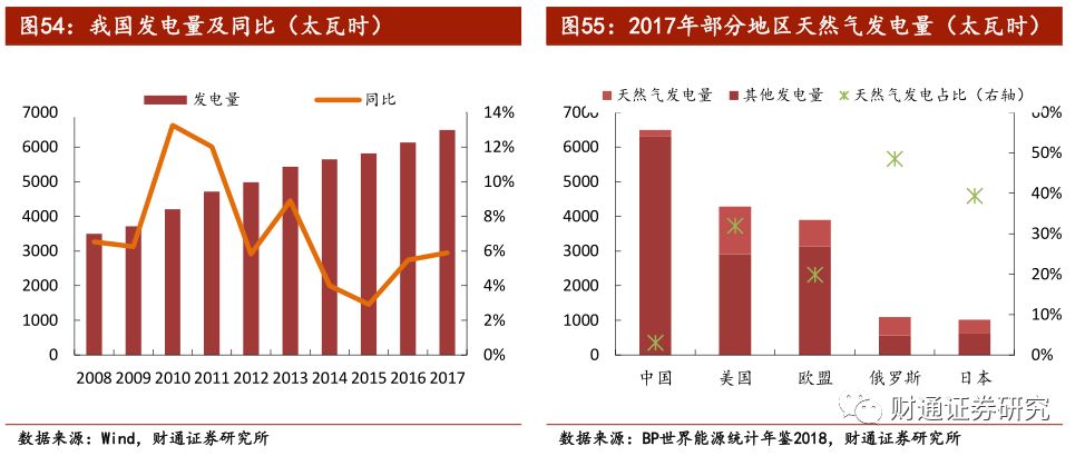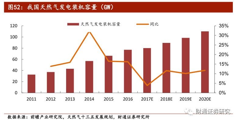 天然气发电具有更高的热效率、更好的环境效益和更好的节能减碳效益,根据《天然气发展十三五规划》,到2020年我国天然气发电装机规模达到1.1亿千瓦以上,占发电装机比例超过5%。