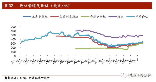 当前我国进口管道天然气平均价格约在340美元/吨(折合0.244美元/立方米),当前从缅甸进口的天然气单价最高,约490美元/吨,从土库曼斯坦等进口的天然气单价在300-350美元/吨。