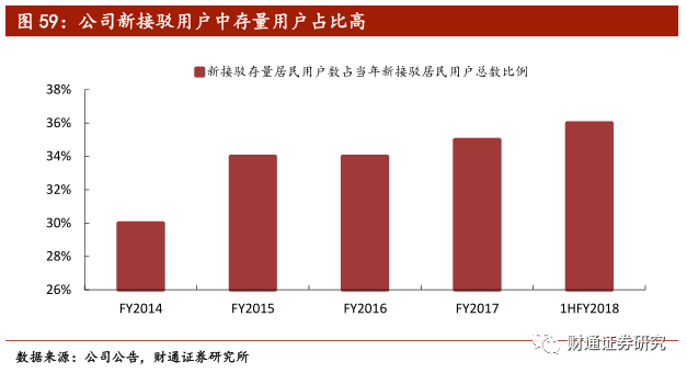 公司新接驳用户中存量用户占比高达36%,有望缓解地产增速下行的风险。居民接驳分为两部分:一部分是接入新建住宅,另一部分就是对接老旧住房内原先不用燃气的居民。除了乡镇燃气新接驳的强劲增长,公司致力于优化推进存量居民用户的新接驳策略。截至1HFY2018,公司存量居民新接驳用户比例达到了36%,若未来地产行业增速有所放缓,存量用户占比高则有望缓解公司接驳业务所受影响。