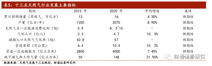 根据我国天然气发展十三五规划,到2020年我国累计天然气探明储量要达到16万亿方,产量达到2070亿方/年,相对于2015年年均增速达8.90%,天然气占一次能源消费比例提升至8.3%-10%,气化人口由2015年的3.3亿人提升至4.7亿人,城镇人口天然气气化率由42.8%提升至57%。该行业发展目标将快速提升天然气的需求。