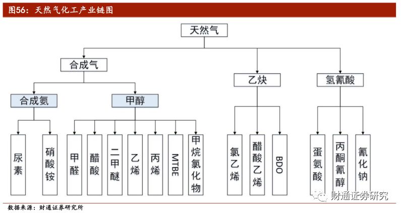 世界上有约50个国家发展了天然气化工。以天然气为原料的化工产品主要包括合成氨、甲醇、乙炔、天然气的直接衍生物等,其中合成氨和甲醇最为重要,全世界超过84%的氨和90%的甲醇都是以天然气为原料生产的。