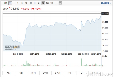智通财经APP获悉,俄铝莫斯科(RUAL)股价高开6%, 俄铝今早发布公告称,美国财政部外国资产管理办公室宣布将公司及其最大股东En+ Group Plc自外国资产管理办公室的特别指定国民及受限制人士名单中剔除,于美国东部标准时间2019年1月27日约下午四时十五分即时生效。