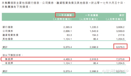 智通财经APP注意到,截至2017年6月30日,汇源果汁的负债总额达到115.18亿元人民币(单位下同),公司负债率高达82.5%,负债率较2016年同期增长24.5个百分点。这些负债中包括银行借款、公司债券、融资租赁负债在内的负债总额为85.78亿元,需要在一年内偿还的负债为55.79亿元。