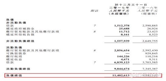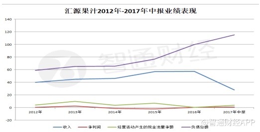 截至2017年末,汇源果汁的负债情况并未有明显改善,公司负债总额依然高达114.02亿元,其中流动负债达到98.45亿元。