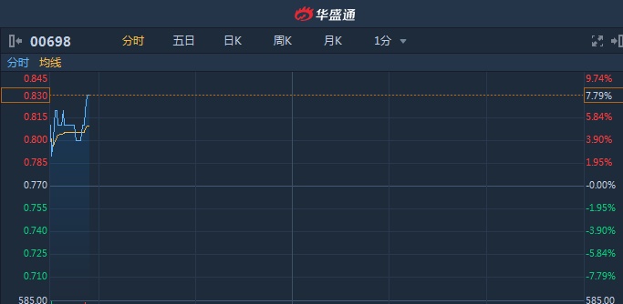 智通财经APP获悉,通达集团(00698)完成应用于5G主流基站天线单机应用的研发,刺激股价大幅拉涨,截至9时53分,涨7.79%,报价0.83港元,成交额2830万。