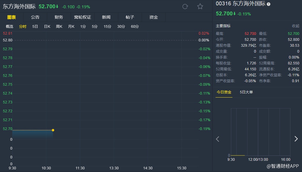 智通财经APP获悉,交银国际称,以2019年0.85倍市账率,将东方海外国际(00316)目标价由45港元上调至48.5港元。维持“中性”评级。