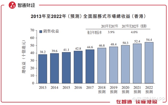 据其招股书显示,首沣控股2020年至2021年3月,计划新增四家酒楼,而且全部位于香港。虽然在2013年至2017年,香港全面服务式市场总收益由382亿增至446亿,复合年增长率为3.9%,并且经预测至2022年复合年增长率为4%,达到544亿。