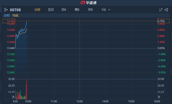 智通财经APP获悉,恒大健康(00708)早盘升势显著,截至9时56分,涨6.7%,报14.34港元,成交额2896万港元。