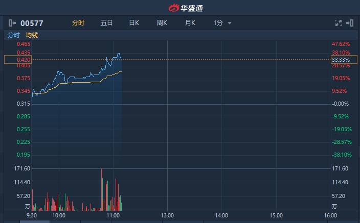 智通财经APP获悉,南安集团(00577)早盘获强力拉升,截至11时8分,涨33.33%,报0.42港元,成交额1138万港元。