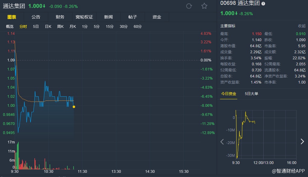 智通财经APP获悉,花旗发表的报告称,通达(00698)股价在周二(20日)急升42%,成交额逾4000万美元,主要因为公司宣布在5G、智能手机、苹果防水零部件及汽车上等的最新发展,该行维持对公司“买入”评级,认为其2019年预测市盈率5.9倍仍然吸引,予目标价1.4港元。