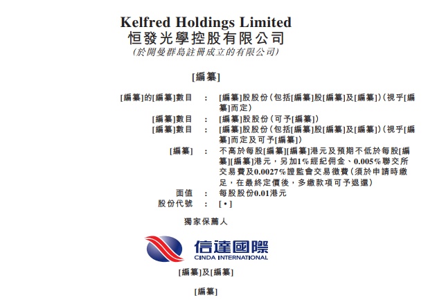 智通财经APP获悉,据港交所披露,1月28日,恒发光学控股有限公司向联交所递交主板上市申请资料,信达国际为其独家保荐人。