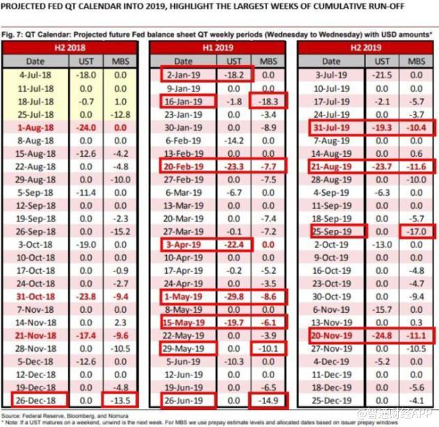 下图为美联储2018年和2019年主要的缩表日程,但分析师认为,在12月美联储官员纷纷转为鸽派后,美联储可能不会再按照这个日程表,而是会保持其“灵活性”,甚至宣布结束缩表,暂停量化紧缩的脚步。