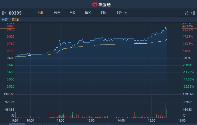 港股异动︱尾盘涨幅进一步扩大 中国智能集团(00395)升逾26%