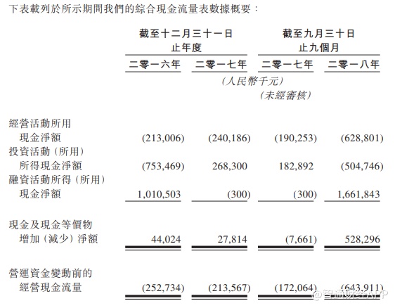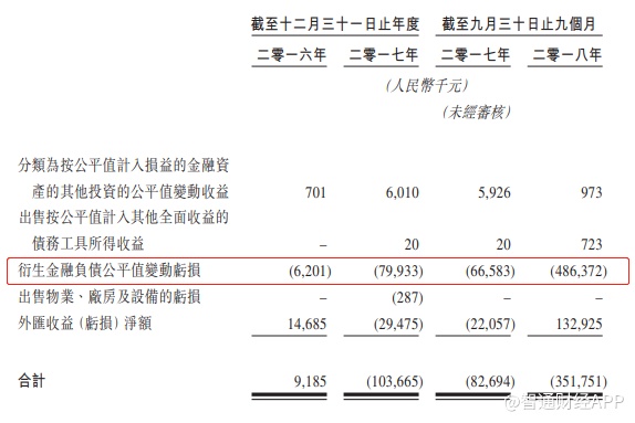 亏损增加主要由于衍生金融负债公平值变动亏损,及研发开支导致。2016、2017及2018年首9个月,全面开支总额大幅增加,分别为2.53亿元人民币(单位下同)、3.44亿元及11.6亿元,衍生金融负债公平值变动亏损分别为620.1万元、7993.3万元、4.86亿元。