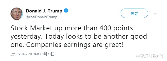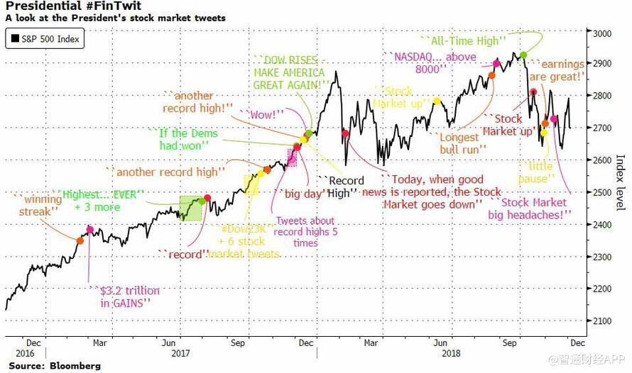特朗普自上任以来,其言行举止都备受市场关注,喜欢“推特治国”的他几乎每发一条推特,都会引起市场震荡。他上一次发推时,道指上涨超400点,随后股市开始进入了下跌周期。交易员们担心,特朗普再次发推是否标志着新一轮调整的开始。