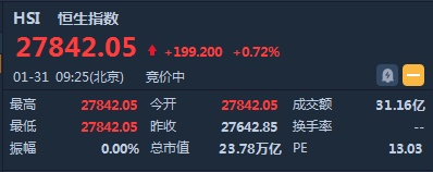 智通财经APP获悉,恒生指数开盘涨0.72%,报27842.05点。国企指数涨0.73%,报10977.02点。红筹指数涨0.62%,报4368.47点。大市盘前成交31.16亿港元。美联储暂缓加息,鲍威尔发表迄今为止最鸽派言论,隔夜美股大涨,美元大跌,港股ADR走强。