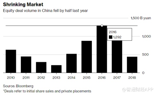 去年中国股权交易的平均业务费率跌到了3.9%的五年低点。普华永道的数据显示,去年中国IPO的募资金额较2017年减少40%,今年的同比降幅可能至少达到10%。