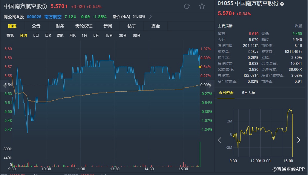 智通财经APP获悉,摩根士丹利发表研究报告,预期南航(01055)股价未来30日将跑羸大市,机会率达60-70%。该行称,南航公布2018年初步业绩,纯利达26.2-31.4亿元人民币,较该行预期高41-69%。除燃油价格上升因素之外,该行预计业绩是受回报率表现较预期强劲,或成本控制得宜所致。