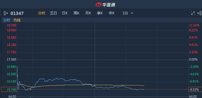 智通财经APP获悉,华虹半导体(01347)昨日晚间公布2018年度业绩,随后股价受挫,并遭瑞信下调评级至“中性”,截至14时34分,跌9.33%,报价15.74港元,成交额1.984亿。