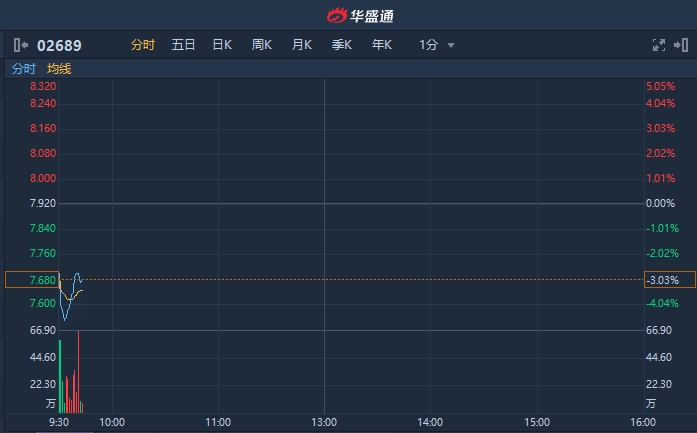 智通财经APP获悉,玖龙纸业(02689)早盘大幅低开后,低位震荡,截止9时42分,跌3.03%,报7.68港元,成交额达3271万港元。