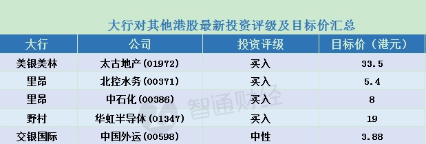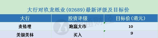 一、大行对玖龙纸业(02689)最新评级及目标价