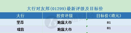 里昂:升友邦(01299)目标价至81元,评级“跑赢大市”