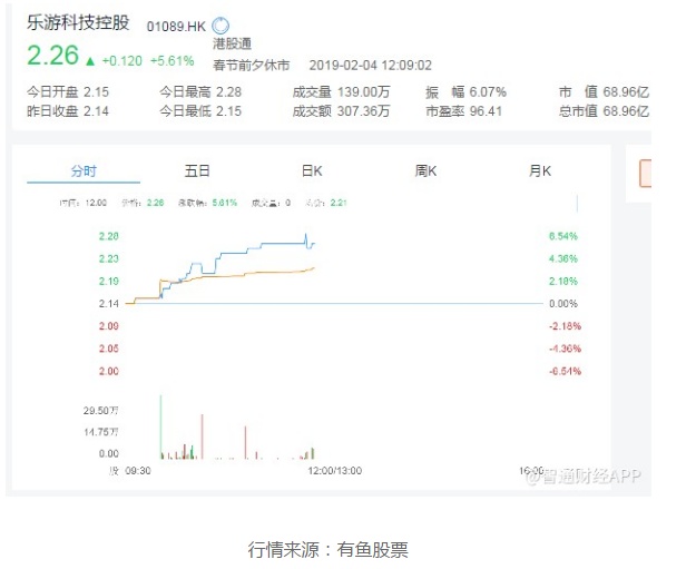截至今日收盘,乐游科技控股(01089)收涨5.61%,报2.26港元。
