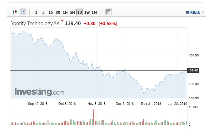 Spotify披露,2018财年第四季度营收为14.95亿欧元,去年同期为11.49亿欧元。第四季度净利润为4.42亿欧元,去年同期为亏损5.96亿欧元。2018财年营收为52.59亿欧元,去年同期为40.9亿欧元。2018财年净利润为亏损7800万欧元,去年同期为亏损12.35亿欧元。