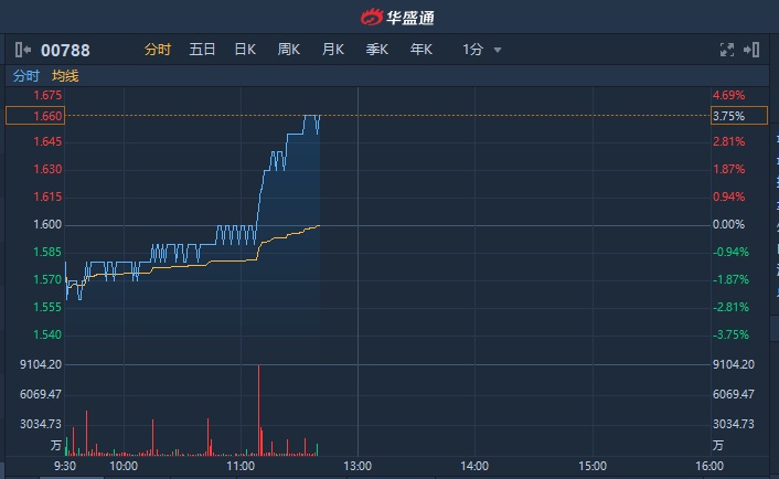 智通财经APP获悉,中国铁塔(00788)临近午间收盘强势走高,收复跌幅,截至11时39分,涨3.75%,报1.66港元,成交额达25亿港元。